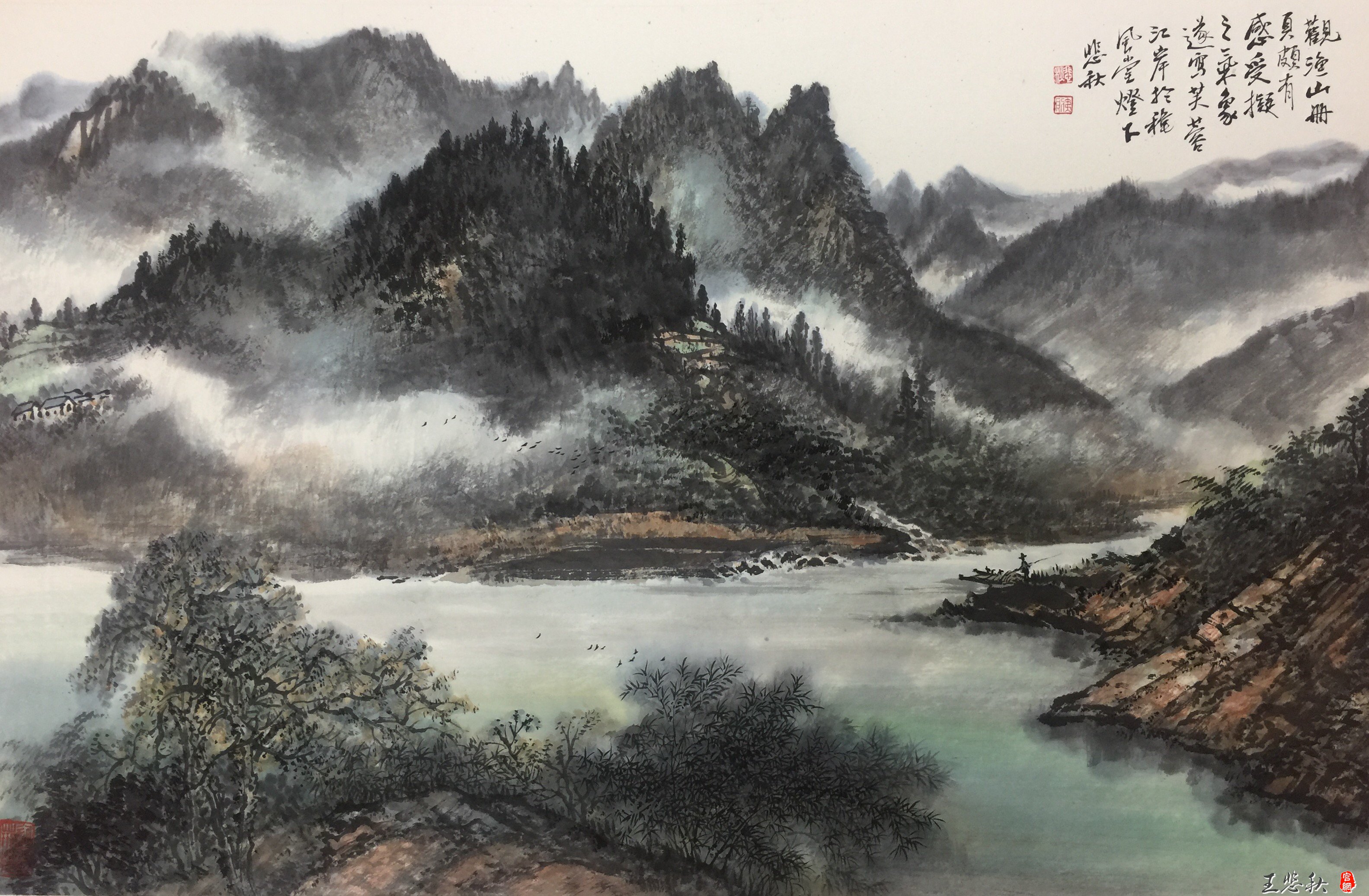王悲秋山水画作品《贵清秋色》 如果想看更多内容敬请扫码关注...